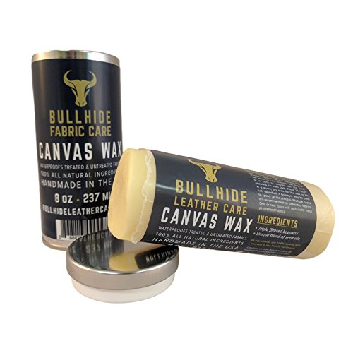Bullhide Canvas Wax 8 oz - All Natural & Handmade in the USA - Waterproofing wax for fabric bags, shoes, belts, furniture, gloves, jackets, tents, outdoor gear and more