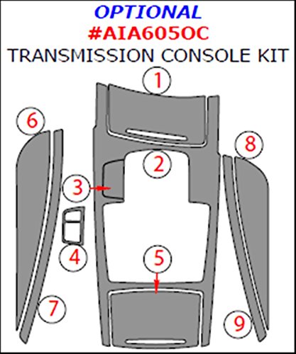 Car Interior Flat Overlay Kit By WOW Trim, Item# AIA605OC-RBBCF Audi A6, Optional Transmission Console Kit Overlay, 9 Piece Set, Real Blue & Black Carbon Fiber