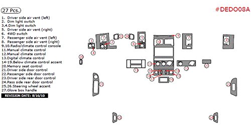 Car Interior Flat Overlay Kit By WOW Trim, Item# DEDO08A-SHBW Dodge Durango, Basic Kit, 27 Piece Set, Honey Burl Wood