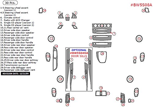 Car Interior Flat Overlay Kit By WOW Trim, Item# BW5S08A-SAZW BMW 5 Series, Basic Kit, 30 Piece Set, African Zebra Wood